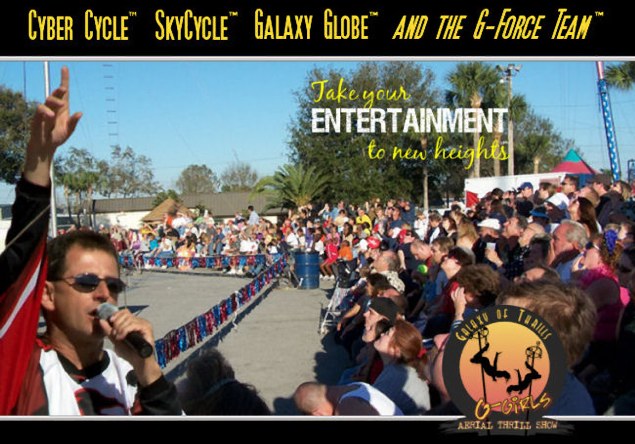 John Winn's Galaxy of Thrills provides the most thrilling, exciting, and professionally-run show available anywhere. With state-of-the-art equipment and rigging, shows can be adapted to suit an endless variety of venues -- fairs, festivals, premieres, corporate events, private parties, and sporting events such as NASCAR, MLB, NBA, and NFL Halftime shows, just to name a few. And since Galaxy of Thrills designs and manufactures their own equipment, it's even possible to custom-design a show exclusively for your event and have it performed nearly anywhere in the world.